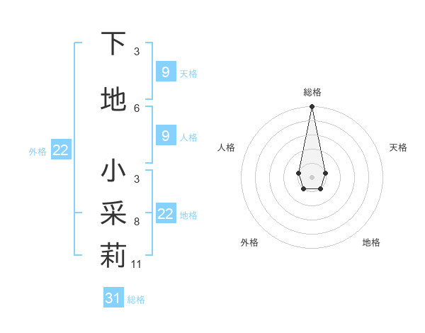 下地 小采莉さんの総格は31画の5点!