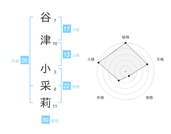 谷津 小采莉さんを姓名の画数から五運を鑑定
