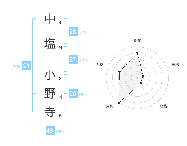 中塩 小野寺さんの総格は48画の4点!