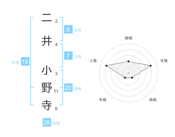 二井 小野寺さんを姓名の画数から五運を鑑定