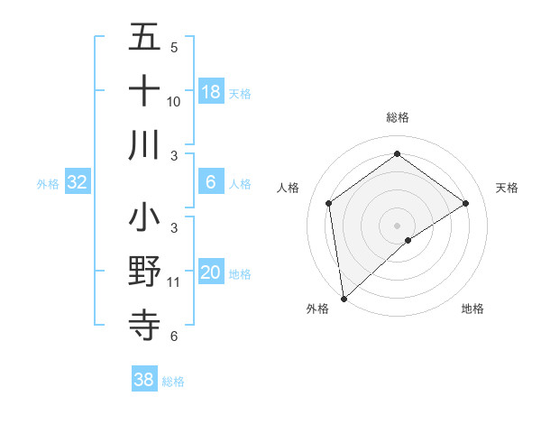 五十川 小野寺さんを姓名の画数から五運を鑑定