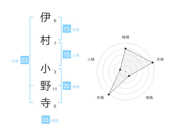 伊村 小野寺さんを姓名の画数から五運を鑑定