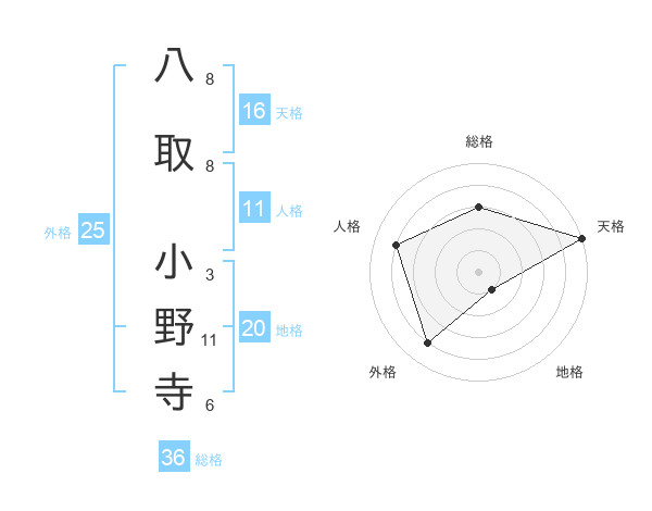 八取 小野寺さんの天格は16画の5点!
