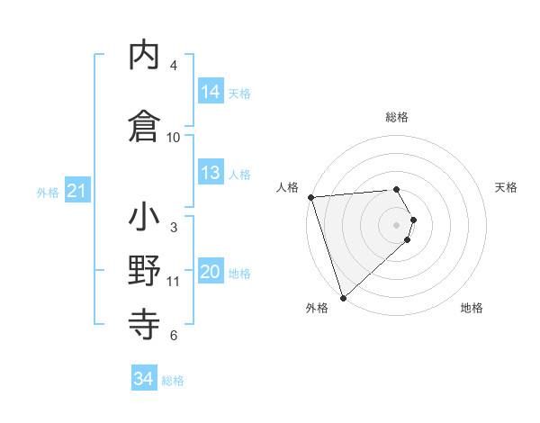 内倉 小野寺さんを姓名の画数から五運を鑑定