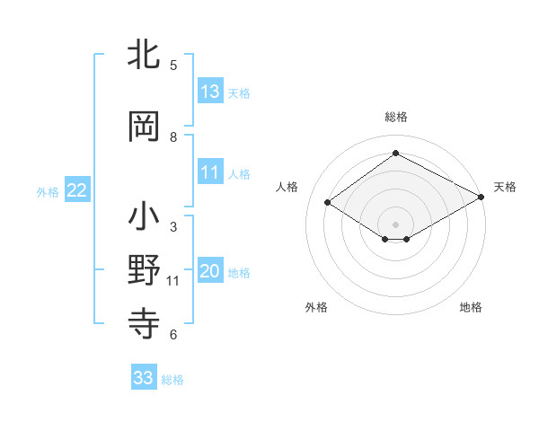 北岡 小野寺さんを姓名の画数から五運を鑑定