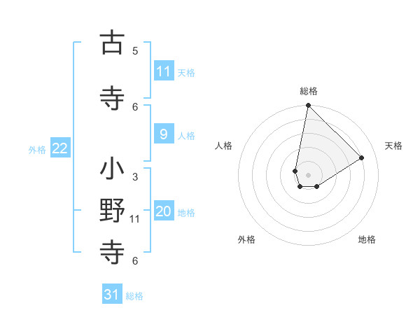古寺 小野寺さんの総格は31画の5点!