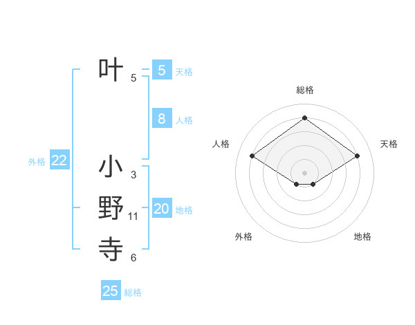 叶 小野寺さんの総格は25画の4点!