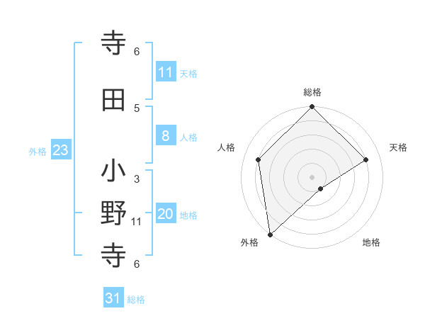 寺田 小野寺さんの外格は23画の5点!