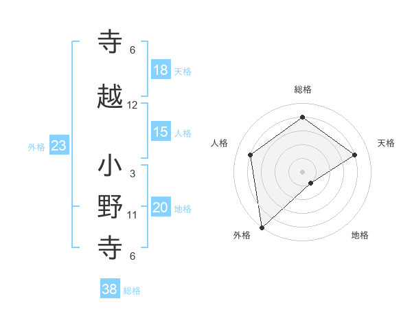 寺越 小野寺さんの外格は23画の5点!