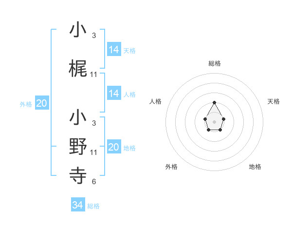 小梶 小野寺さんを姓名の画数から五運を鑑定