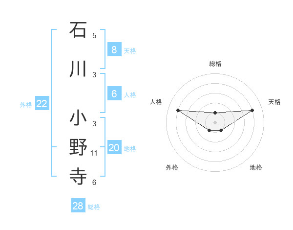 石川 小野寺さんの総格は28画の1点