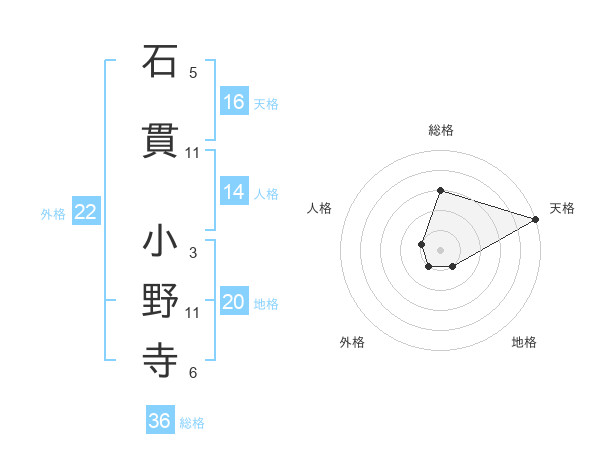 石貫 小野寺さんの天格は16画の5点!