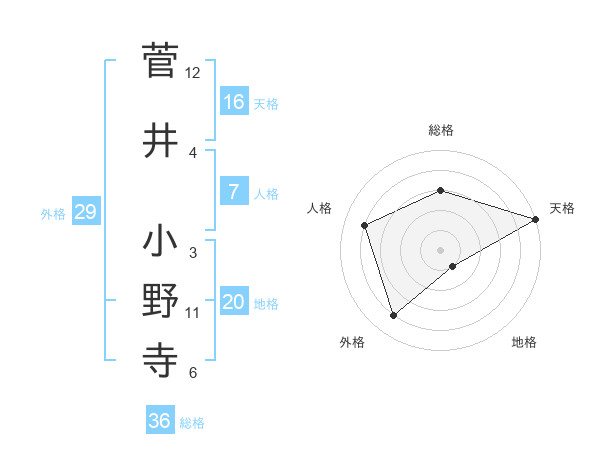 菅井 小野寺さんの天格は16画の5点!