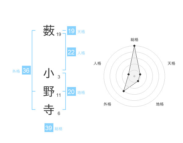 薮 小野寺さんの外格は36画の3点!