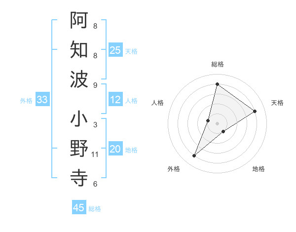 阿知波 小野寺さんの総格は45画の4点!