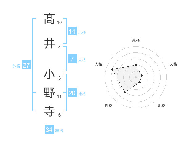 髙井 小野寺さんの総格は34画の2点!