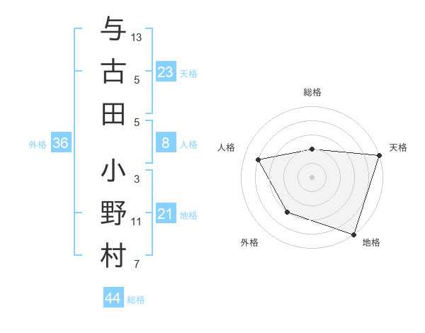 与古田 小野村さんを姓名の画数から五運を鑑定