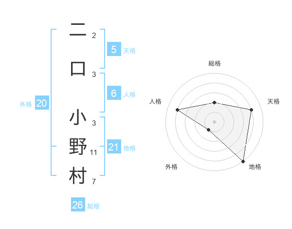 二口 小野村さんの総格は26画の2点!