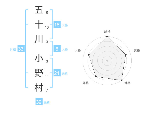 五十川 小野村さんを姓名の画数から五運を鑑定