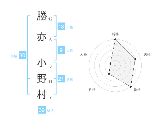 勝亦 小野村さんの総格は39画の5点