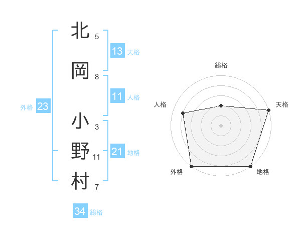 北岡 小野村さんを姓名の画数から五運を鑑定