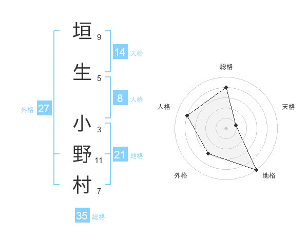 垣生 小野村さんを姓名の画数から五運を鑑定