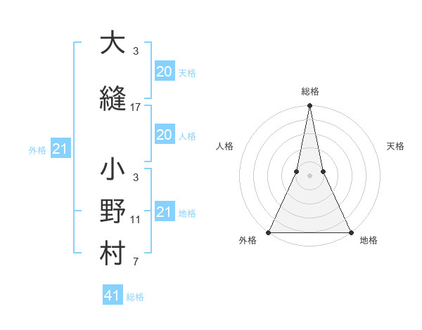 大縫 小野村さんの地格は21画の5点!