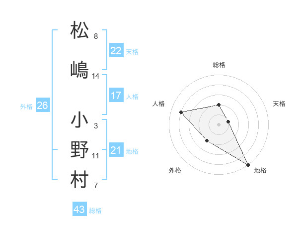 松嶋 小野村さんを姓名の画数から五運を鑑定