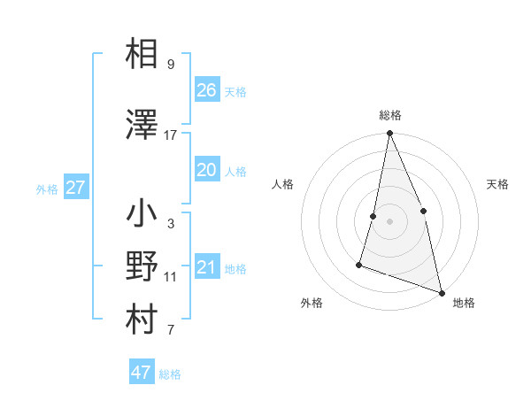 相澤 小野村さんを姓名の画数から五運を鑑定