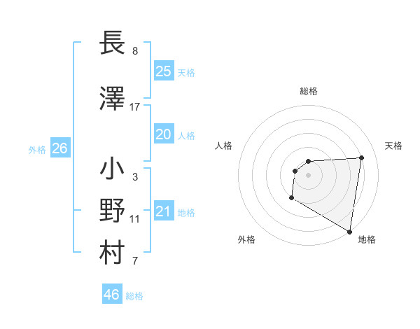 長澤 小野村さんを姓名の画数から五運を鑑定
