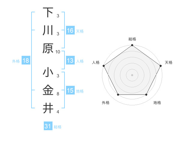 下川原 小金井さんを姓名の画数から五運を鑑定