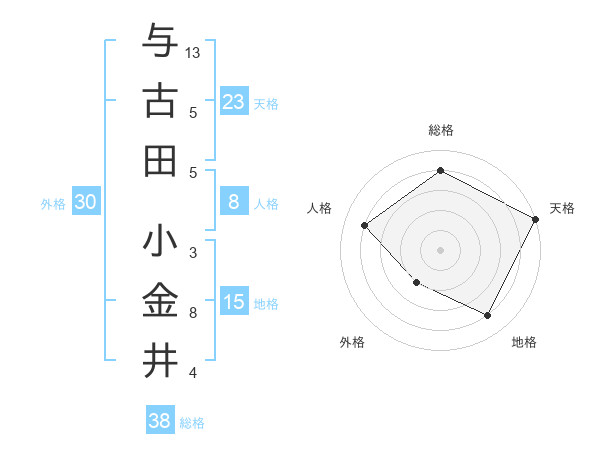 与古田 小金井さんを姓名の画数から五運を鑑定