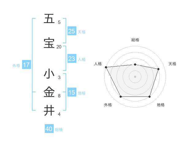 五宝 小金井さんを姓名の画数から五運を鑑定