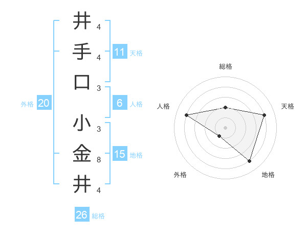 井手口 小金井さんの総格は26画の2点