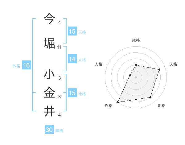 今堀 小金井さんを姓名の画数から五運を鑑定