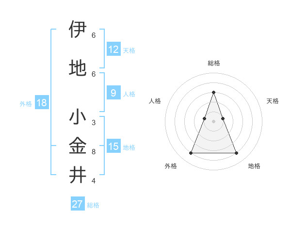 伊地 小金井さんを姓名の画数から五運を鑑定