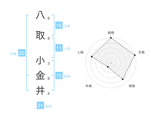 八取 小金井さんの総格は31画の5点!