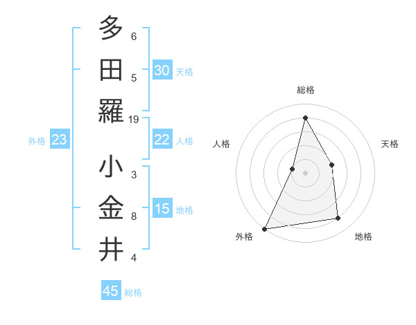 多田羅 小金井さんを姓名の画数から五運を鑑定