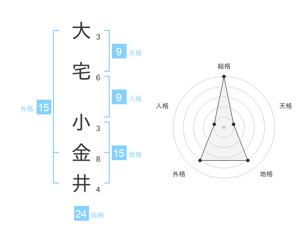 大宅 小金井さんを姓名の画数から五運を鑑定