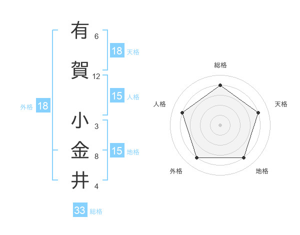 有賀 小金井さんを姓名の画数から五運を鑑定