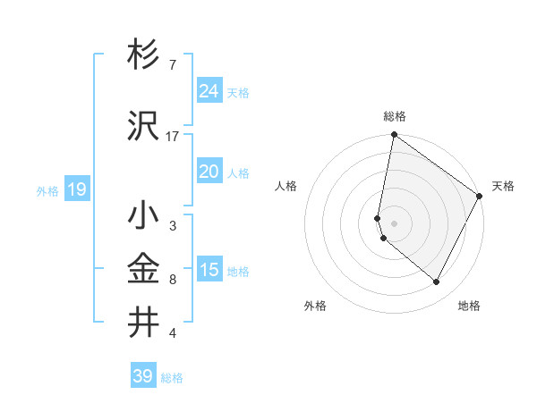 杉沢 小金井さんを姓名の画数から五運を鑑定