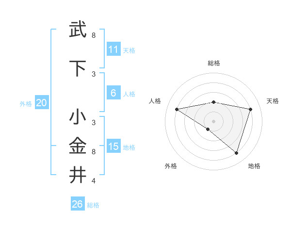 武下 小金井さんの天格は11画の4点!
