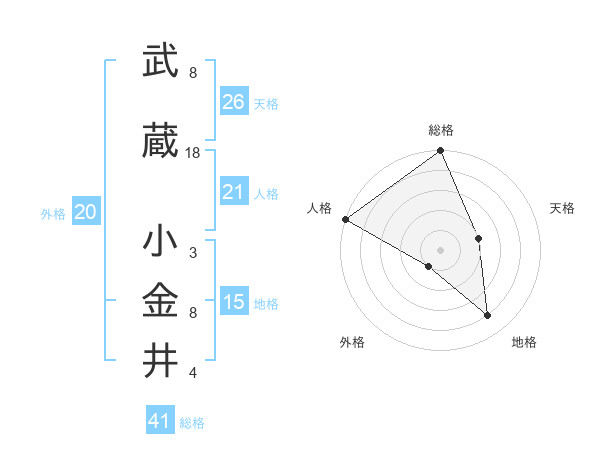 武蔵 小金井さんの総格は41画の5点!