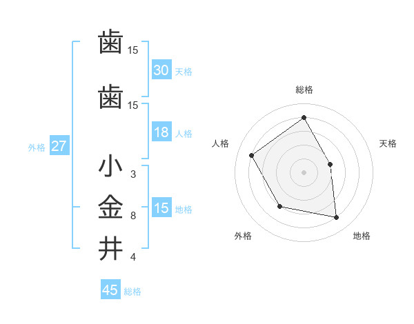 歯歯 小金井さんの総格は45画の4点!