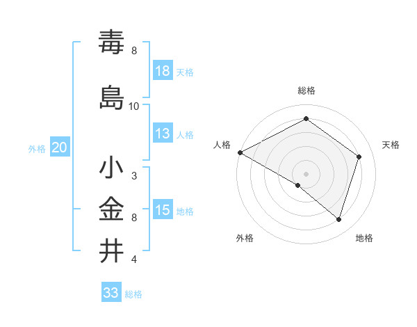 毒島 小金井さんを姓名の画数から五運を鑑定