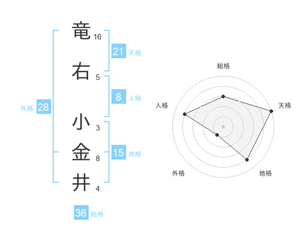 竜右 小金井さんの天格は21画の5点!