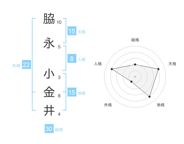 脇永 小金井さんの天格は15画の4点!
