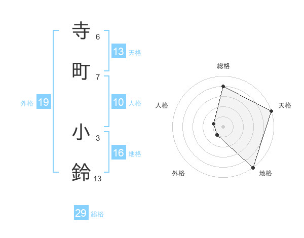 寺町 小鈴さんの総格は29画の4点!