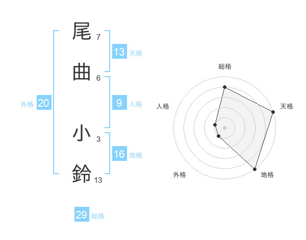 尾曲 小鈴さんの地格は16画の5点!