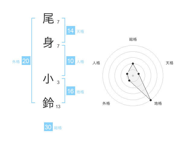尾身 小鈴さんの総格は30画の2点!